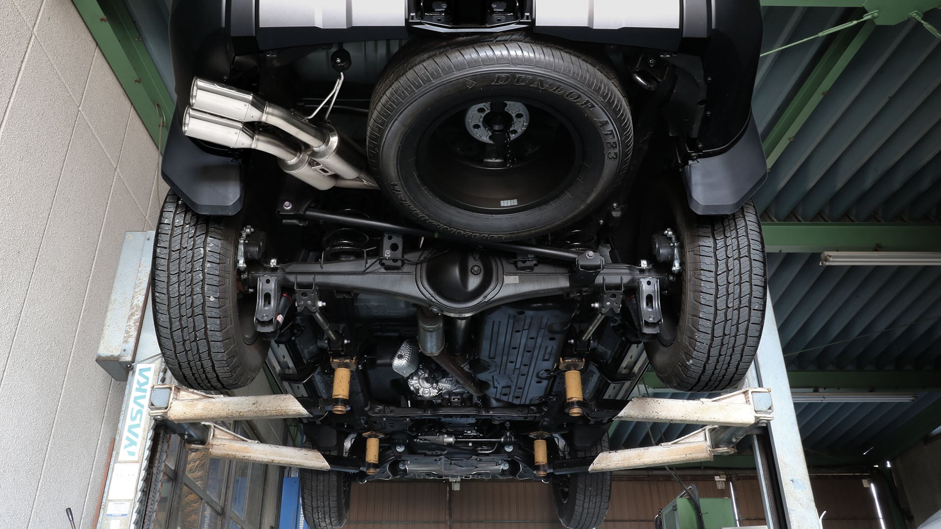 105X70 オーバルテール(左サイドダブル出し)を採用。バンパー横から排気する“サイド出しレイアウト”により、優れた走破性を確保。悪路や段差でのヒットリスクを軽減し、オフロード走行でも安心です。