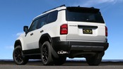 ヒッチメンバーの取り付けを想定したマフラーレイアウトにより、カーライフの可能性をさらに広げます。特徴的なサイド出しのレイアウトによりトレーラーなどの牽引物に排ガスが直接かかりにくく、更にデパーチャーアングルも稼げます。