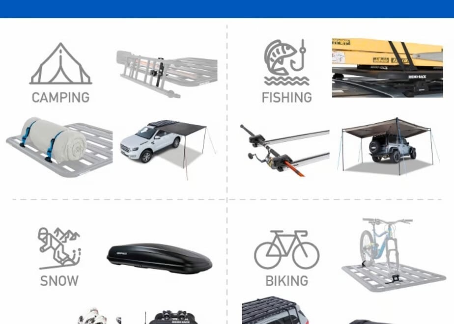 アウトドアやキャンプ、スキーやスノーボード、カヤックやボートなど、さまざまなシーンで使い勝手が良好な多機能・多目的なルーフラックとなっています。