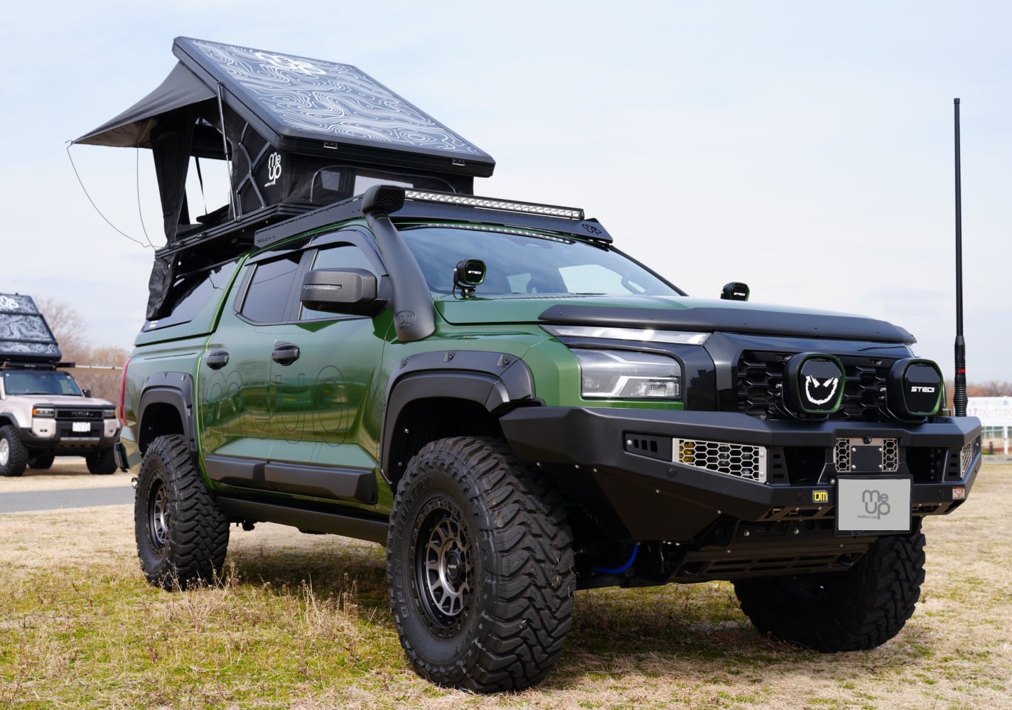 STEDIらしい無骨さと上質さを兼ね備えたデザインで、車両のフロントフェイスを力強く演出します。EVOシリーズ特有のシャープなディテールは、見た目の存在感も抜群です。