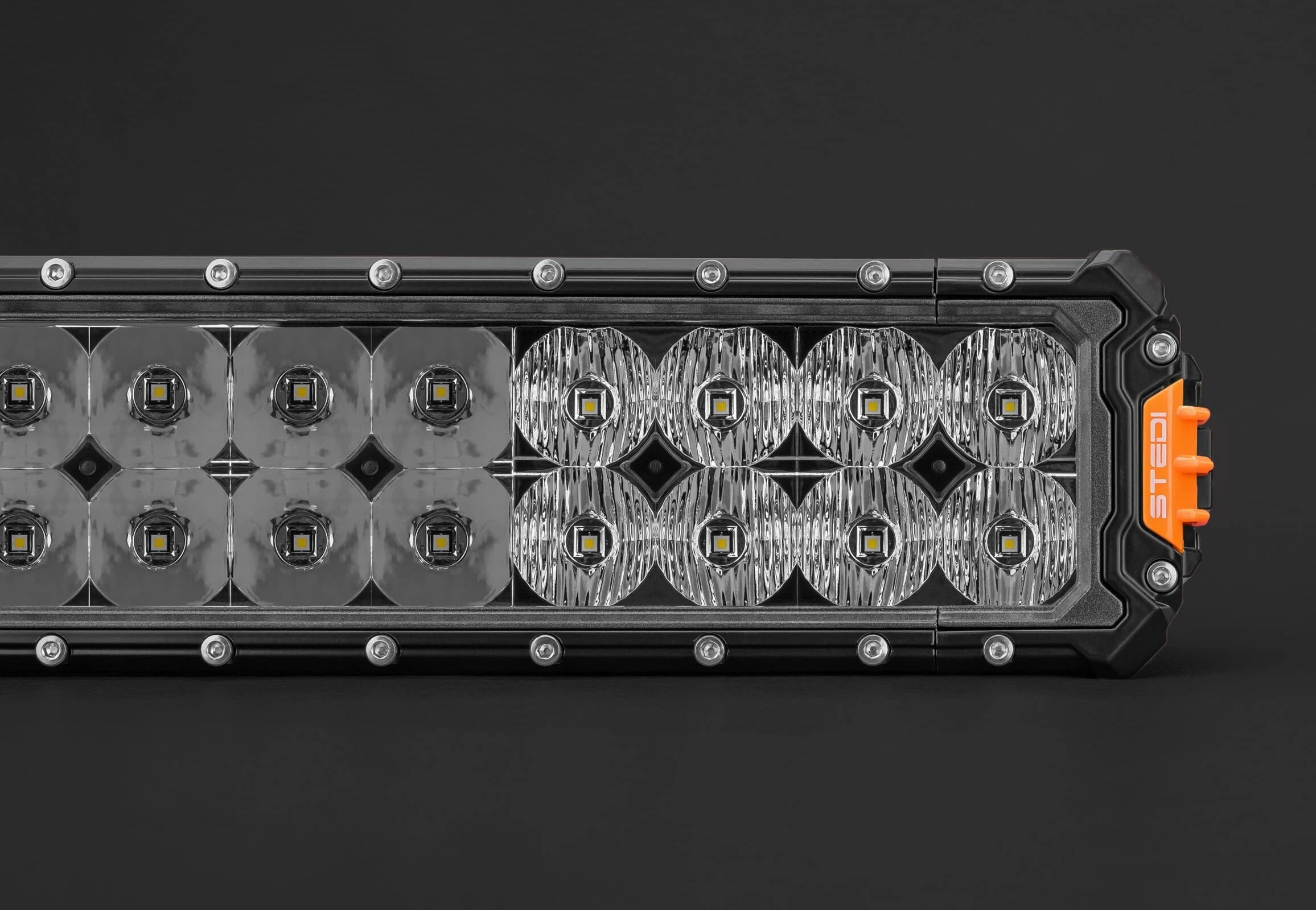 ST3303 PRO は、プロの現場でも選ばれる高い信頼性と、STEDI ならではのクリアで伸びる光を備えたフラッグシップLEDライトバーです。遠方までしっかり届く照射力と、手前を均一に照らす美しい配光が、夜間走行の安心感を大きく高めます。